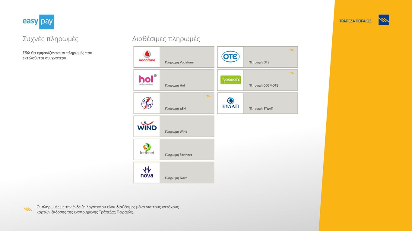 Εδώ μπορείτε να βρείτε όλα τα τηλεοπτικά σποτ που αναζητείτε, καθώς και tutorial videos για την χρήση των υπηρεσιών & των winbank apps. Χρησιμοποιώντας την εφαρμογή νέο winbank mobile app της τράπεζας πειραιώς, μπορείτε να πραγματοποιήσετε τις. Moreover, winbank mobile app is enriched with a new functionality, winbank pay *, your digital activate winbank pay and make contactless payments easily, quickly and securely with your cards in. Via winbank you can acquire a credit card easily, quickly & simply. Απολαύστε μία εμπειρία πλοήγησης και εκτέλεσης των συναλλαγών σας, φιλική προς τον χρήστη, από όπου κι αν συνδέεστε (η/υ, tablet ή smartphone).