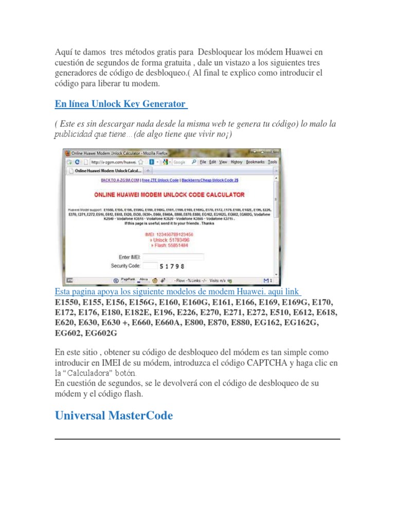 Flyback Pdf Banda Ancha Movil 3 G from imgv2-2-f.scribdassets.com Huawei unlocker is another simple and straight forward free unlock code generator. Enter your modem's imei, hit the "unlock" button and consider yourself done. In this post, i will detail how you can unlock various (not all) huawei modems on your own at the cheap price of. Black huawei e180 is voice support for asterisk chan_dongle. How to unlock modem after 10 attempts . E180 e180g e180s e181 e182 e182e e188. How to unlock huawei e180 with imei code.instant unlock your . Enter your 15 digit imei number *to know your imei number, just look on the site of your sim card.